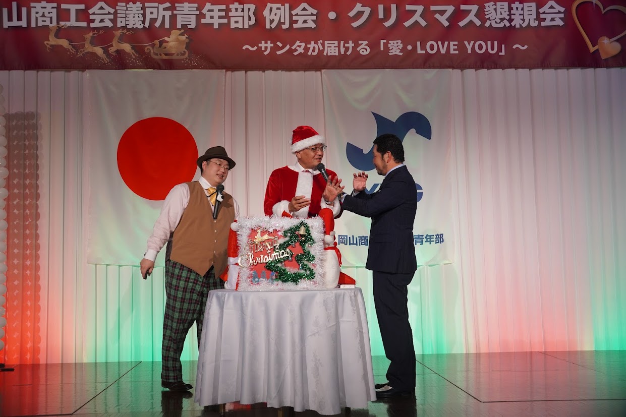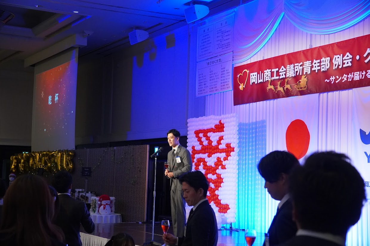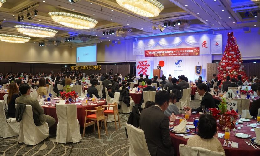 12月18日、ホテルグランヴィア岡山において12月例会を開催しました。今回は岡山YEGの活動を日頃から理解し、支えている家族を招待しての開催となり、通常例会とは異なる雰囲気でのスタートとなりました。例会の冒頭では山田会長より、日ごろの岡山YEG活動への理解について、家族へ深い感謝の意が述べられました。